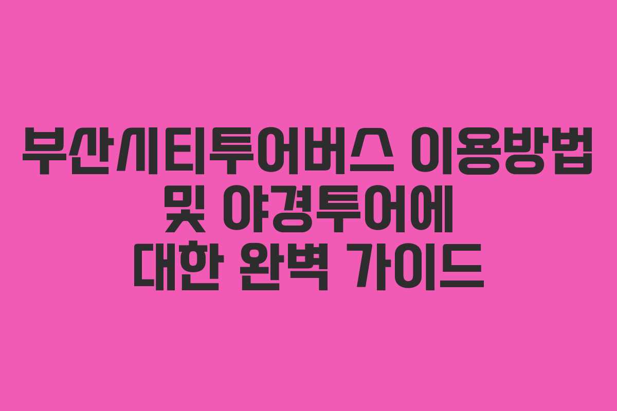 부산의 매력을 한 번에 느낄 수 있는 부산시티투어버스는 편리함과 효율성을 추구하는 여행자에게 최고의 선택입니다. 이 가이드는 부산시티투어버스를 이용하는 방법, 시간표, 요금, 그리고 야경투어에 대한 정보를 제공합니다.