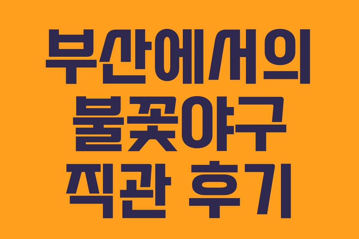 부산에서의 불꽃야구 직관은 정말 즐거운 경험이었습니다. 앞으로도 이런 멋진 경기를 즐길 수 있는 기회가 많아지길 바라며, 불꽃야구가 더 많은 팬들에게 사랑받기를 응원합니다. 다음에는 어떤 새로운 경험이 기다리고 있을지 기대가 큽니다.
