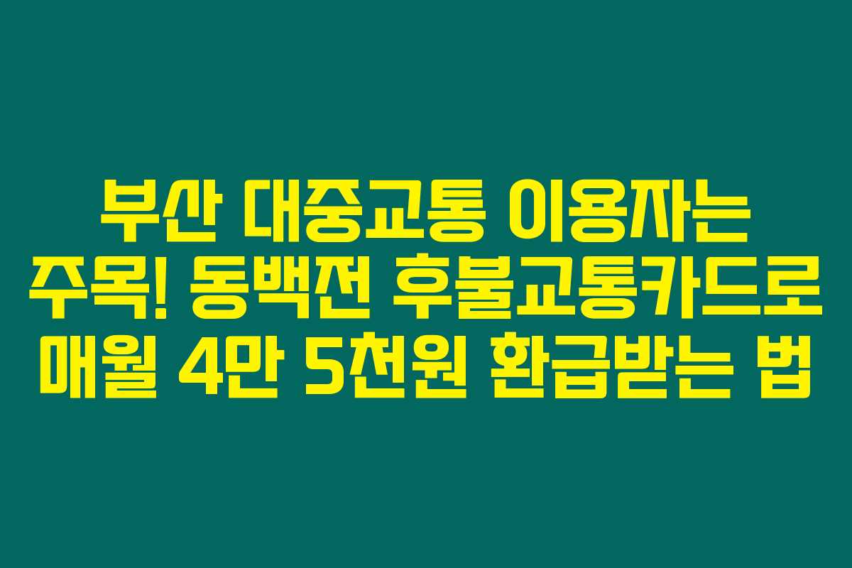 부산에서 대중교통을 자주 이용하는 분이라면, 동백전 후불교통카드의 환급 혜택을 꼭 확인해야 해요. ‘매월 4만 5천원을 환급받는다고?’ 생각하셨다면, 이 기회는 놓치지 마세요. 대중교통 요금 상승으로 지갑이 부담스러운 요즘, 이런 혜택이 있다는 것은 진짜 대박이거든요. 아래를 읽어보시면 이 환급의 조건과 주의사항에 대해 자세히 알아볼게요!