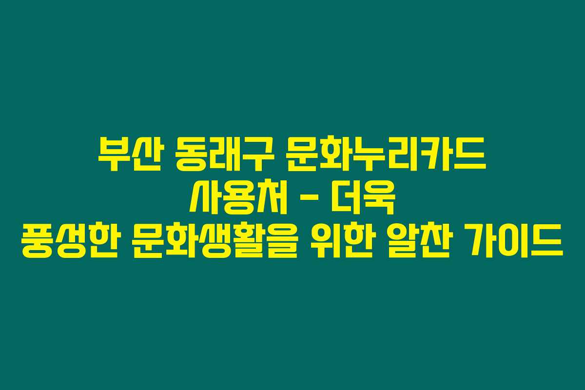 제가 알아본 바로는 부산 동래구의 문화누리카드 사용처 정보는 지역 주민들의 문화 생활을 더욱 다채롭게 만들어주는 중요한 요소에요. 문화누리카드는 기초생활수급자와 차상위계층이 다양한 문화, 스포츠, 관광 활동을 누릴 수 있도록 지원하는 제도로, 이를 통해 문화 격차를 줄이는 데 큰 도움이 되고 있답니다. 아래를 읽어보시면 부산 지역에서 강조된 다양한 사용처와 함께, 그곳에서 누릴 수 있는 혜택에 대해 자세히 알아보실 수 있습니다.