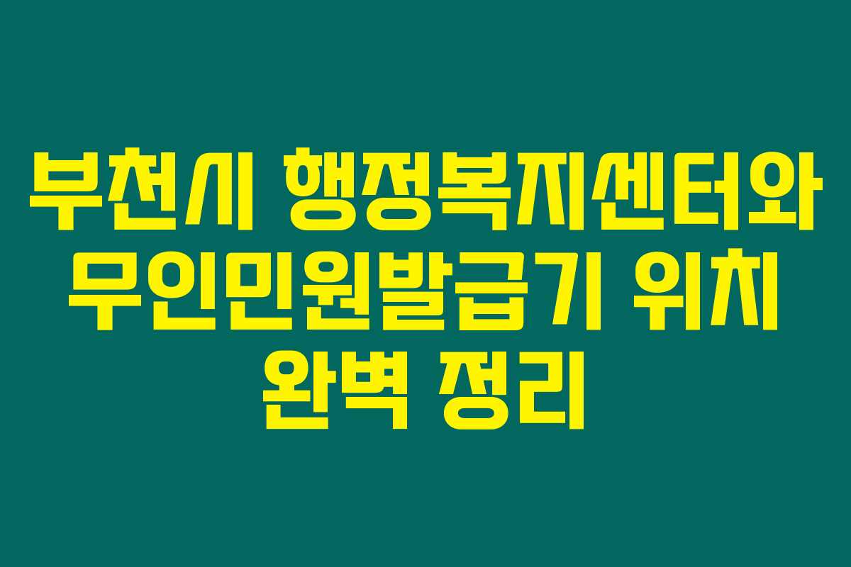 부천시 행정복지센터와 무인민원발급기 위치 완벽 정리