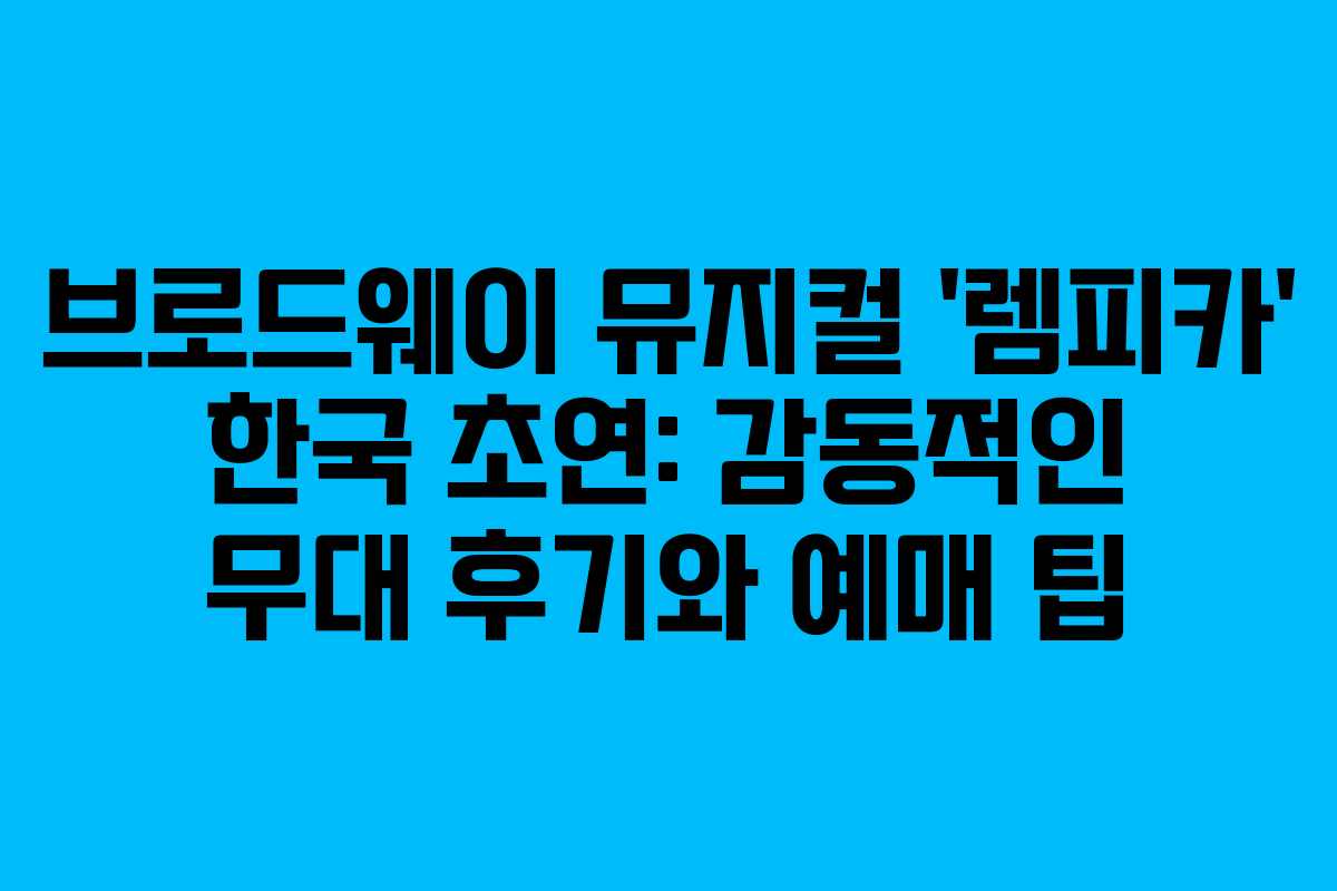 브로드웨이 뮤지컬 '렘피카' 한국 초연: 감동적인 무대 후기와 예매 팁