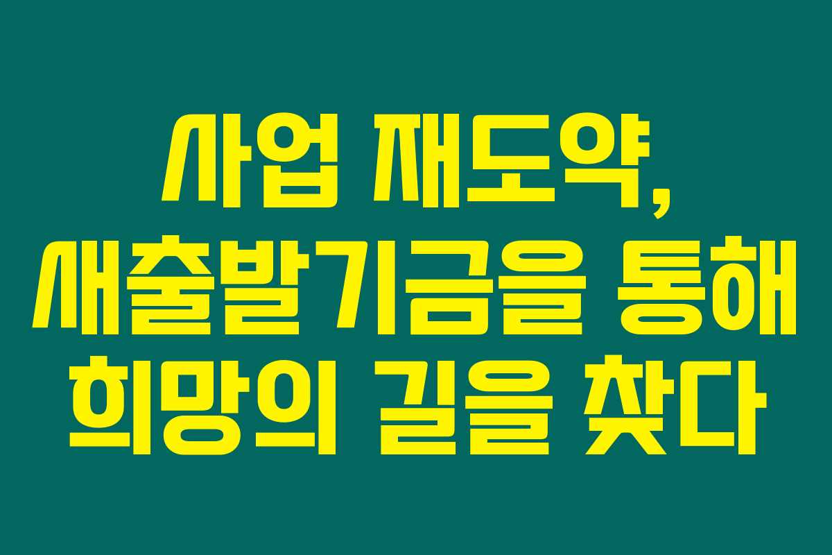 사업 재도약, 새출발기금을 통해 희망의 길을 찾다