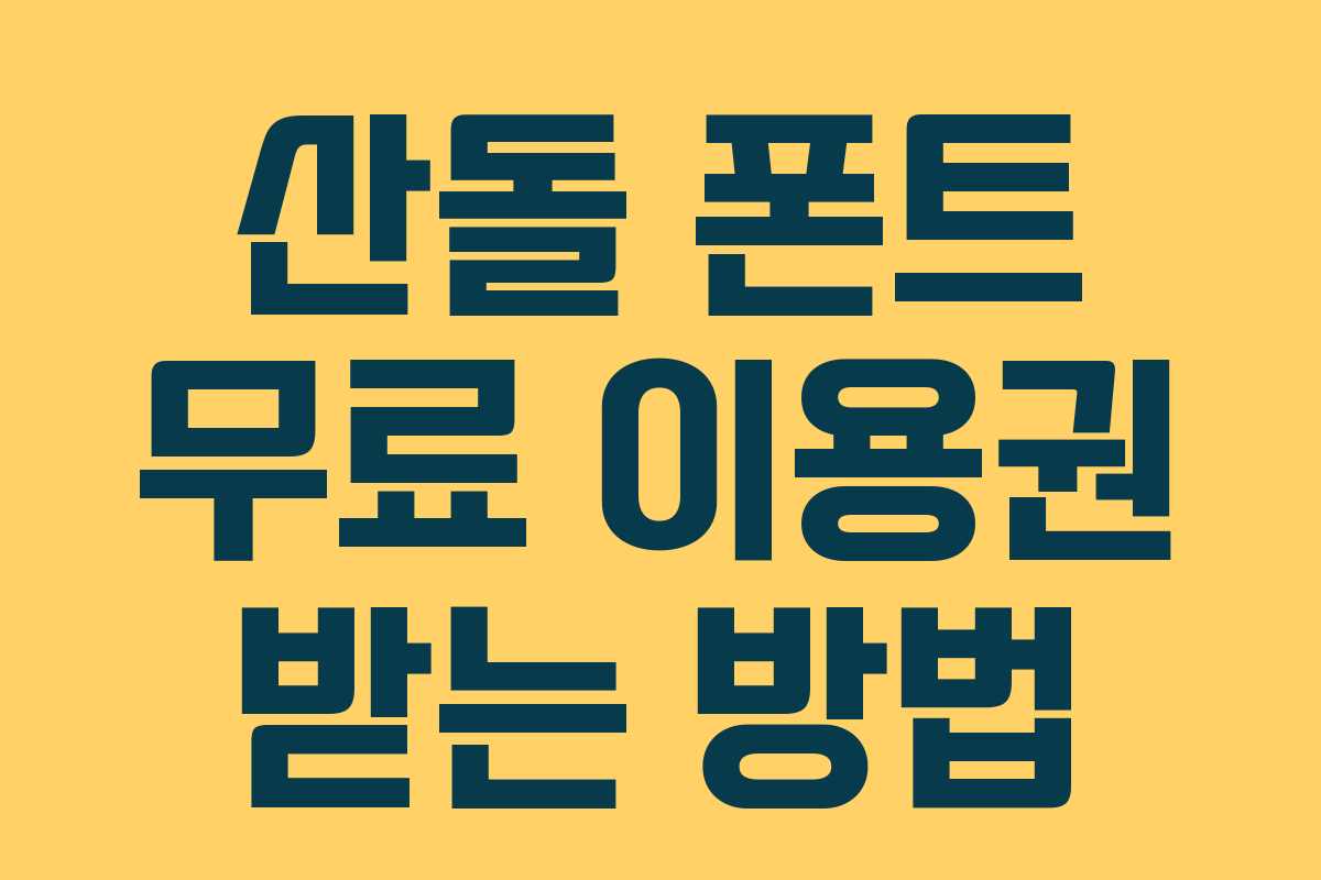 산돌 폰트는 다양한 디자인 프로젝트에서 활용될 수 있는 인기 있는 폰트입니다. 이번 글에서는 산돌 폰트의 무료 이용권을 받을 수 있는 방법을 소개하겠습니다. 간단한 절차를 통해 누구나 쉽게 무료 이용권을 받을 수 있으니, 놓치지 마세요!