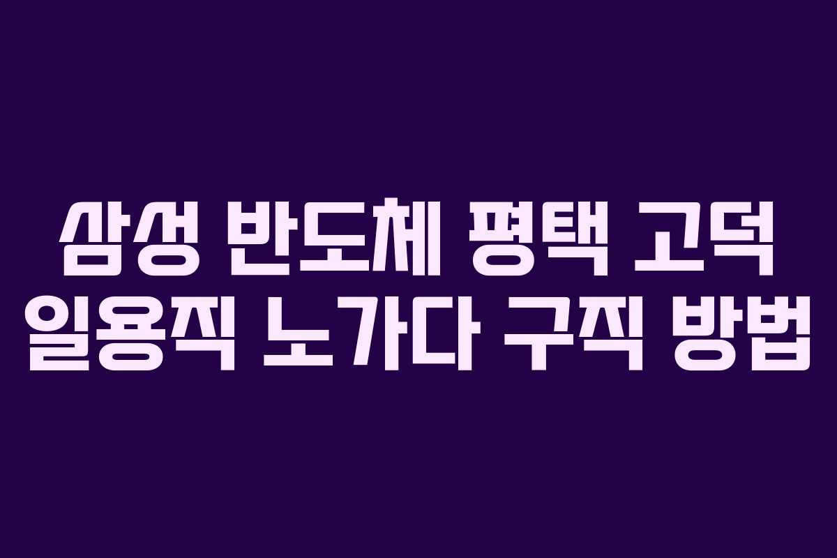 일용직 노가다를 찾는 것은 쉽지 않을 수 있지만, 다양한 방법을 활용하면 더 나은 기회를 얻을 수 있습니다. 특히 삼성 반도체 평택 고덕 지역에서는 여러 가지 구직 방법이 존재합니다.