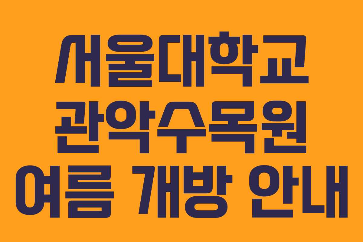 서울대학교 관악수목원이 여름철 동안 개방됩니다. 이 기간 동안 다양한 미술 전시와 체험 부스가 운영되니 많은 방문 바랍니다.