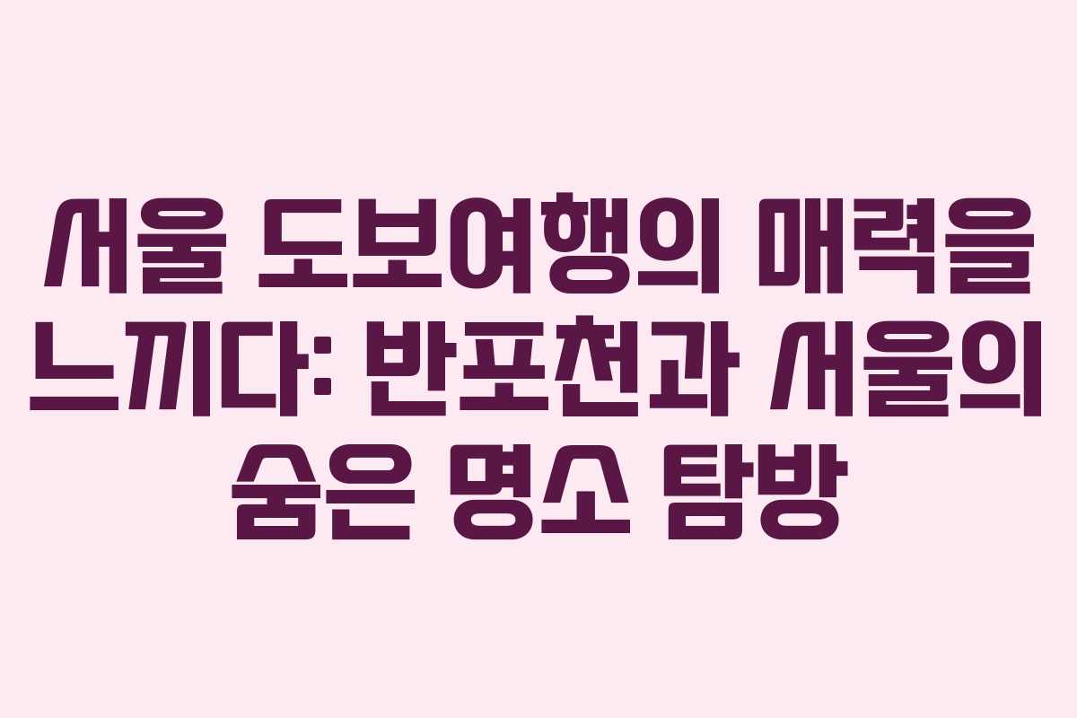 - 실전 가이드: 서울 도보여행을 즐기는 방법
