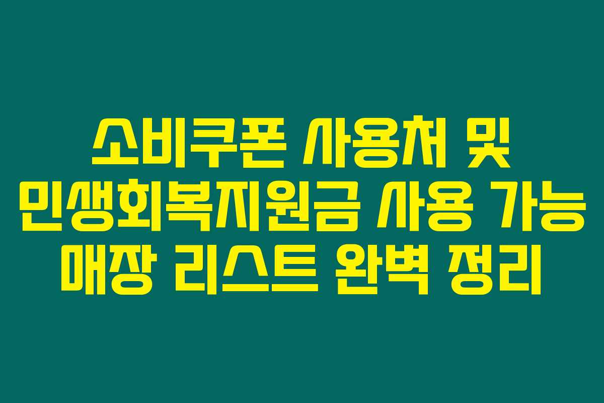소비쿠폰으로 사용 가능한 매장은 지역 경제와 소상공인의 지원을 목적으로 설계되어 있습니다. 다시 요약하자면, 대형마트, 온라인 쇼핑몰 등에서는 사용이 불가해요. 아래에서는 소비쿠폰으로 사용할 수 있는 매장 리스트를 정리해 볼게요.
