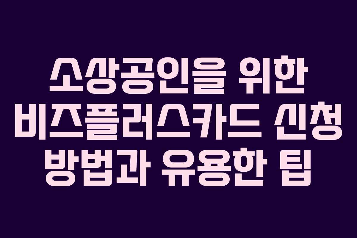 소상공인 비즈플러스카드는 소상공인들이 경영에 필요한 자금을 지원받을 수 있는 중요한 수단입니다. 이 카드를 통해 다양한 경비를 효율적으로 관리하고 사업 운영에 필요한 자금을 원활하게 조달할 수 있습니다. 이번 글에서는 비즈플러스카드의 신청 방법과 활용 팁을 자세히 안내하겠습니다.