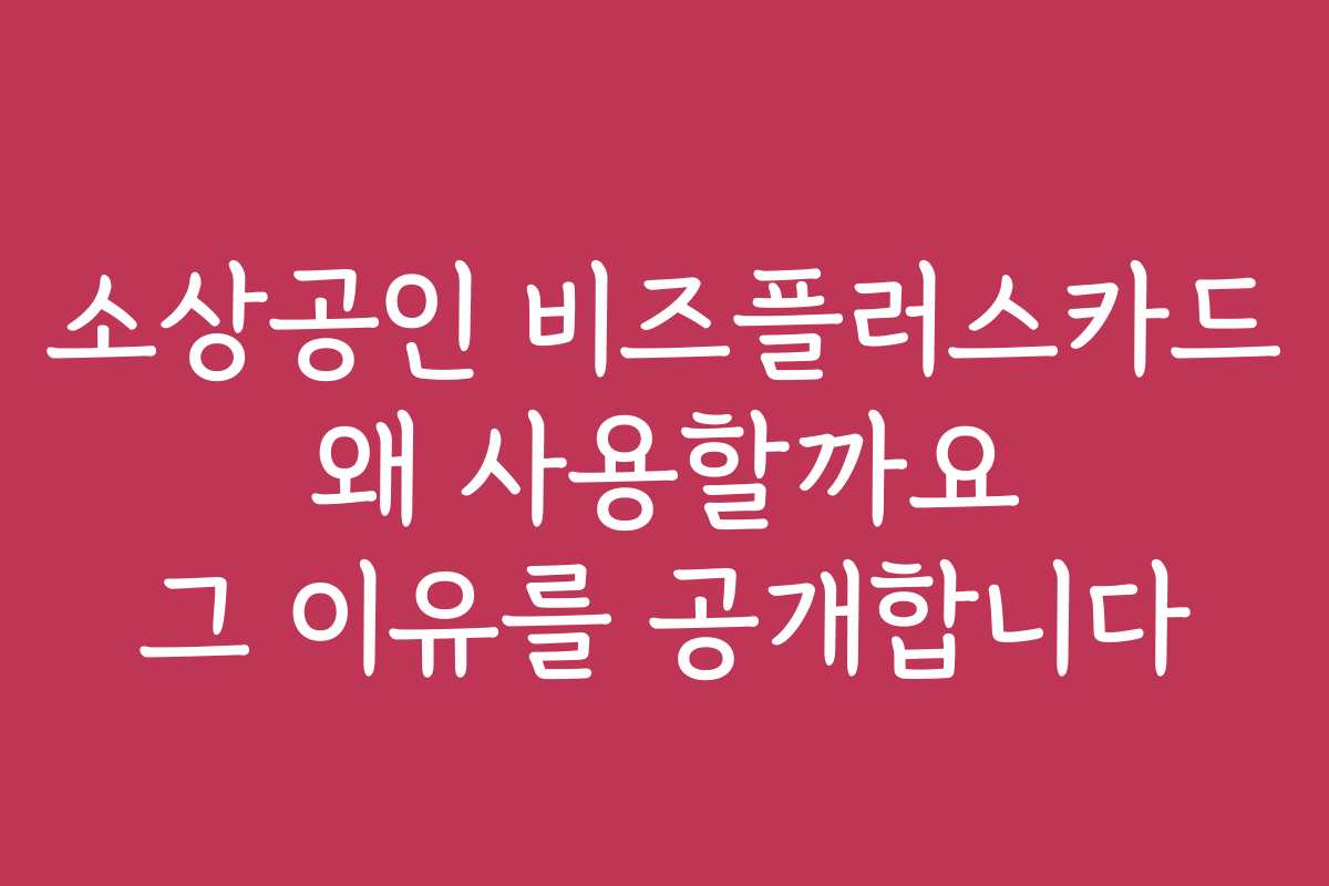 소상공인 비즈플러스카드를 왜 사용해야 할까요? 그 이유를 공개합니다!