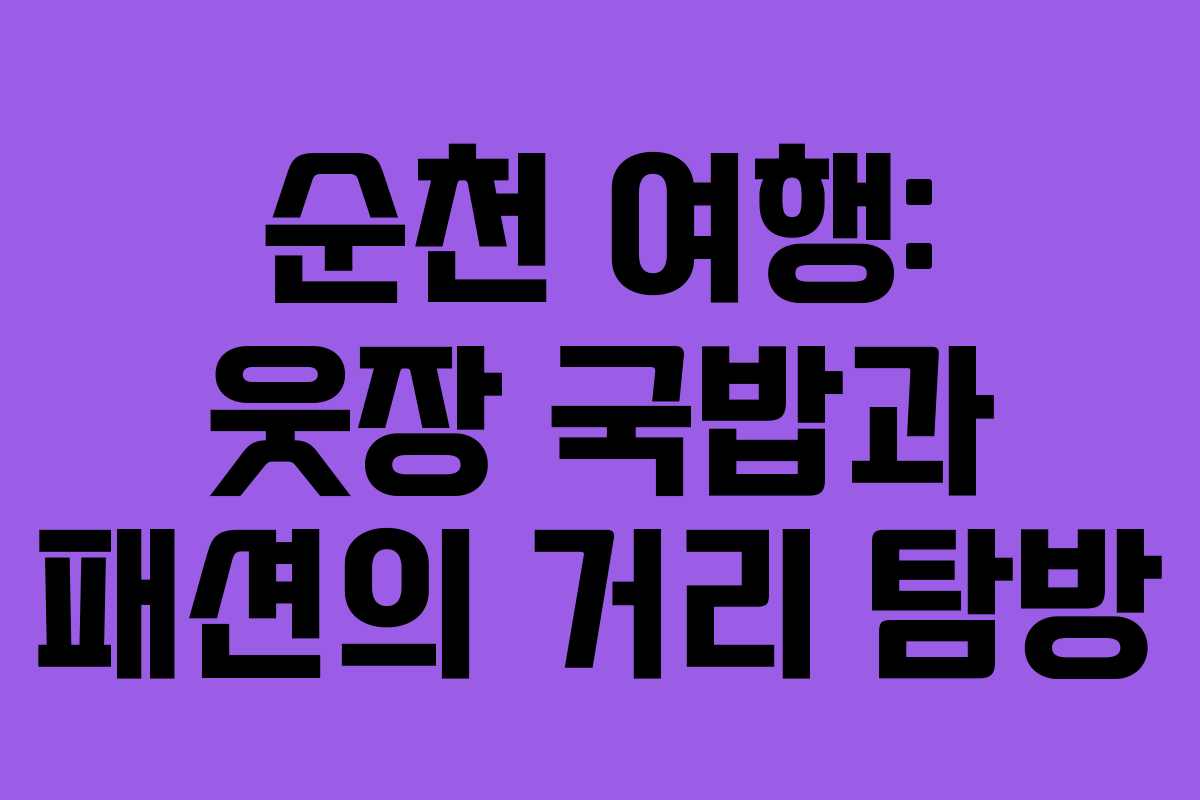 2026년 상반기는 순천 여행을 계획하는 이들에게 많은 기대를 안겨줍니다. 순천의 매력은 역사와 현대가 공존하는 도시의 모습 속에서 발견됩니다. 특히, 순천 웃장 국밥은 이 지역의 대표적인 음식으로, 많은 여행자들에게 사랑받고 있습니다. 이번 글에서는 순천 웃장 국밥과 패션의 거리를 중심으로 한 여행 코스를 소개하겠습니다.