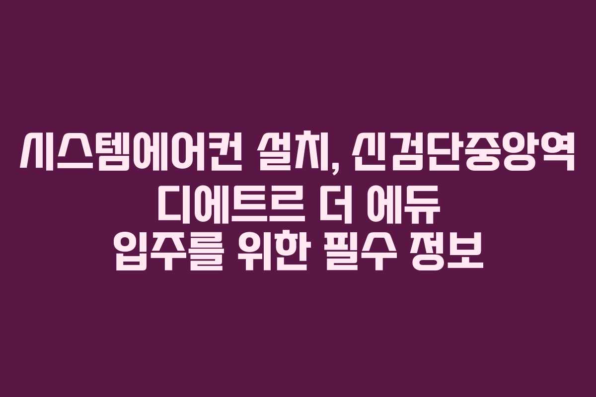 신검단중앙역 디에트르 더 에듀는 입주를 앞두고 있는 아파트로, 쾌적한 주거 환경을 위한 시스템에어컨 설치는 선택이 아닌 필수입니다. 이 글에서는 시스템에어컨 설치의 중요성과 더불어, 입주민을 위한 공동구매 혜택 및 설치 시 고려해야 할 사항을 안내합니다.
