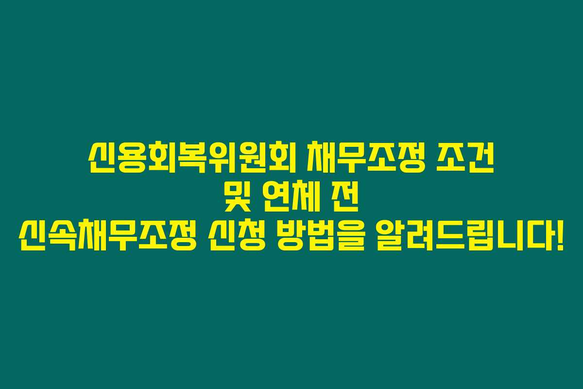 신용회복위원회 채무조정 조건 및 연체 전 신속채무조정 신청 방법을 알려드립니다!