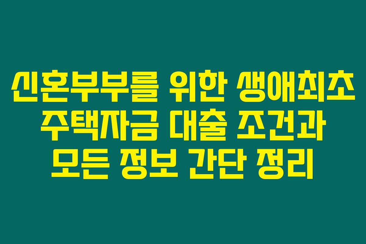 신혼부부를 위한 생애최초 주택자금 대출 조건과 모든 정보 간단 정리