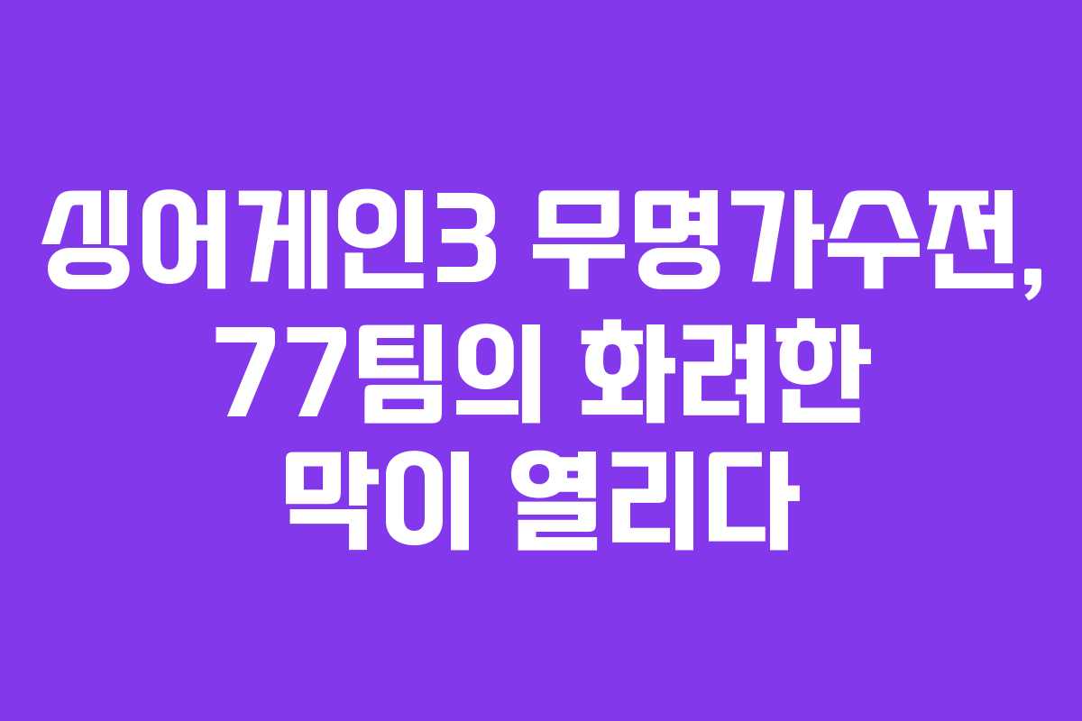 본선 진출 77팀은 각기 다른 개성과 스토리를 지니고 있어, 그들의 무대가 더욱 기대됩니다. ‘재채기 유발 가수’, ‘0어게인이 걱정되는 가수’, ‘600만 명을 울린 가수’ 등 참신한 소개들은 관객들에게 큰 웃음을 주며, 프로그램의 매력을 한층 높이고 있습니다.