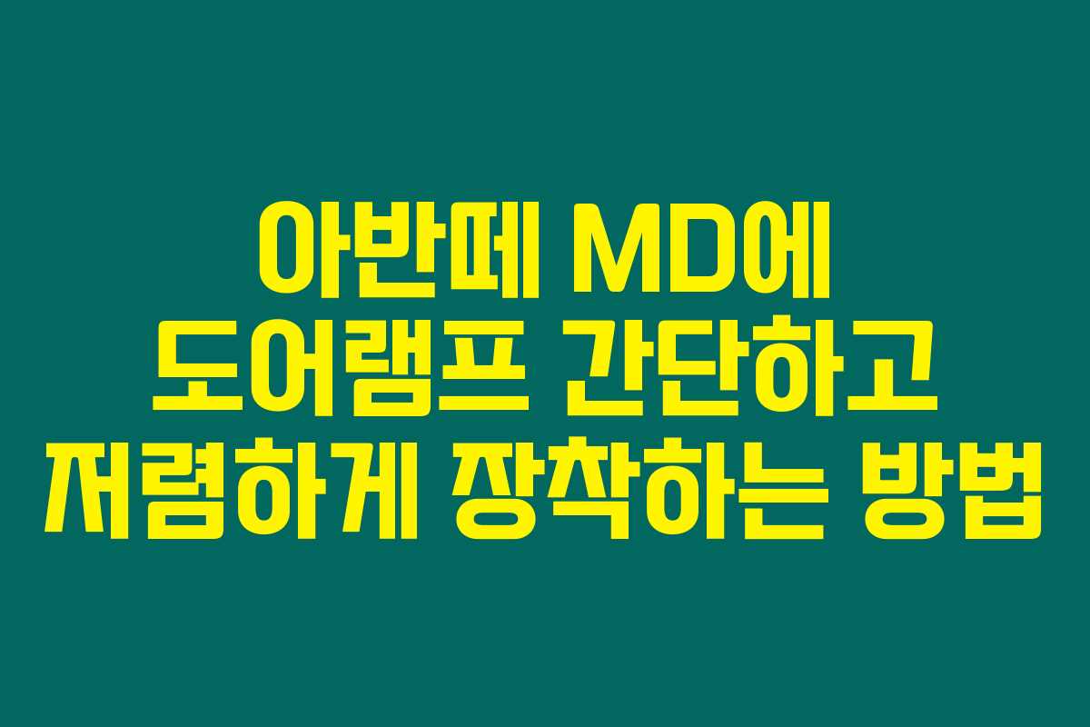 아반떼 MD 11년식 차주라면 도어램프가 정말 갖고 싶지 않으신가요? “도어램프 장착하고 싶다”는 생각이 드는 순간, 당신을 위한 아주 간단하고 경제적인 방법을 소개해 드릴게요. 아래를 읽어보시면 저렴한 도어램프 장착 팁과 경험담을 통해 당신의 궁금증이 해소될 거예요.
