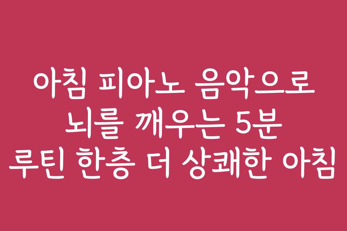 아침 피아노 음악으로 뇌를 깨우는 5분 루틴 한층 더 상쾌한 아침