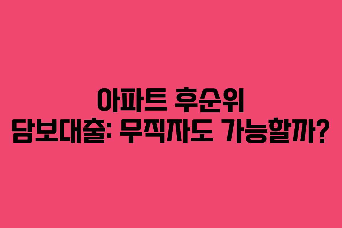 무직자라도 부모님 명의의 아파트로 담보를 제공할 경우 후순위 담보대출이 가능합니다. 다만, 금융기관의 심사 기준이 엄격할 수 있으므로 사전 조사가 필요합니다.