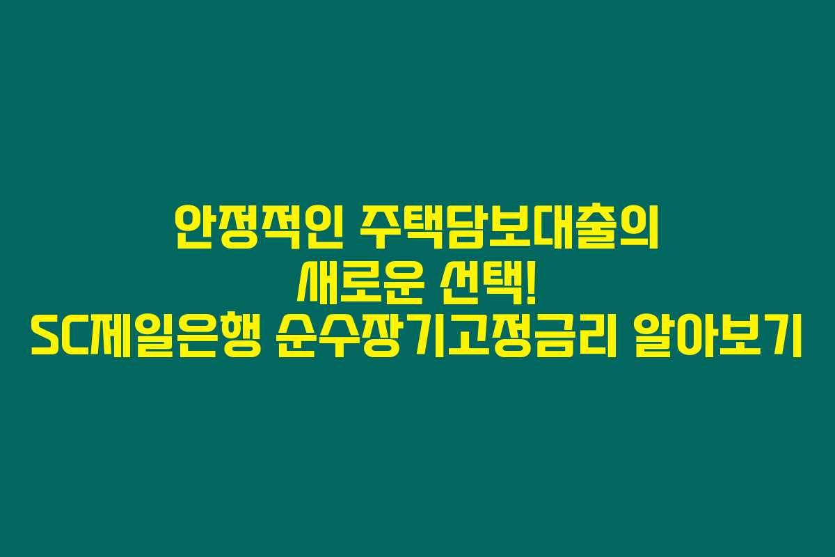 제가 직접 경험해본 결과로는 주택담보대출을 선택할 때 가장 중요한 요소 중 하나는 바로 금리의 안정성이에요. 특히, SC제일은행의 순수장기고정금리 주택담보대출은 처음 금리가 고정되어 만기까지 변동이 없다는 점에서 많은 고객들에게 주목받고 있더라고요. 아래를 읽어보시면 이 상품의 특징과 장점을 자세히 알게 될 것입니다.