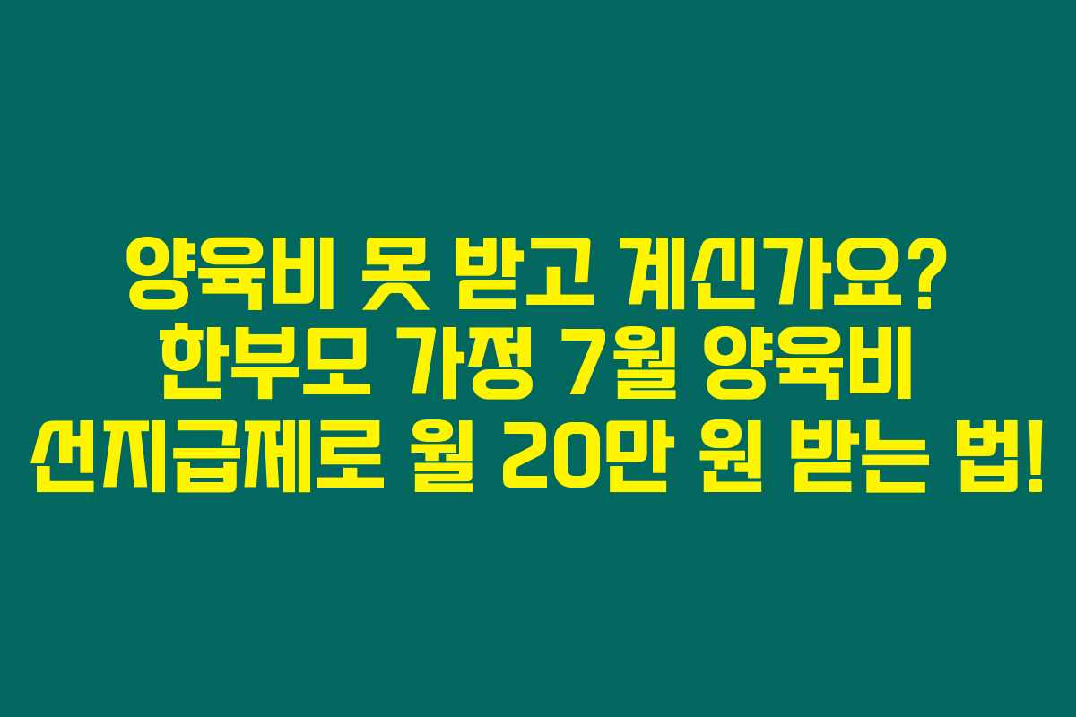 2025년부터 시행되는 7월 양육비 선지급제를 통해 양육비를 받지 못했던 한부모 가정이 매달 20만 원씩 지원을 받을 수 있는 기회입니다. 이 제도를 통해 당신의 경제적 스트레스를 덜어줄 수 있는 방법을 아래에서 상세히 안내드릴게요.