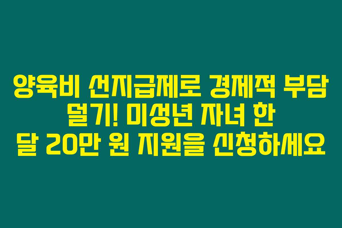 제가 직접 리서치한 바로는, 오는 7월부터 시행되는 양육비 선지급제는 경제적 어려움에 처한 한부모 가정에게 큰 도움이 될 것으로 보입니다. 이 제도는 미성년 자녀를 둔 가정에서 양육비를 받지 못할 때, 국가가 직접 지급해주는 방식이에요. 아래를 읽어보시면 이 제도의 지원 대상과 신청 방법 등을 자세히 알아볼 수 있습니다.