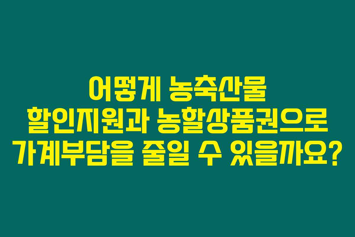 물가 상승이 지속되고 있는 요즘, 많은 가정에서 가계부담이 늘어나고 있습니다. 이럴 때일수록 똑똑한 소비를 통해 우리의 경제적 여유를 줄이려는 노력이 필요하죠. 아래를 읽어보시면, 농축산물 할인지원과 농할상품권을 활용해 어떻게 가계 부담을 효과적으로 낮출 수 있는지 알게 될 거예요.