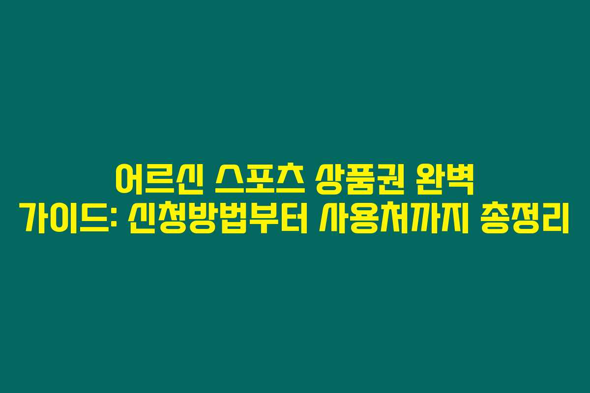 노후에도 건강하고 활기찬 삶을 즐기고 싶으신가요? 최근 도입된 ‘어르신 스포츠 상품권’이 그 길잡이가 되어줄 거예요. 이 상품권으로 경제적인 부담 없이 다양한 스포츠 활동을 시작해 보세요. 신청방법부터 사용처까지, 아래를 읽어보시면 쉽게 이해할 수 있습니다.