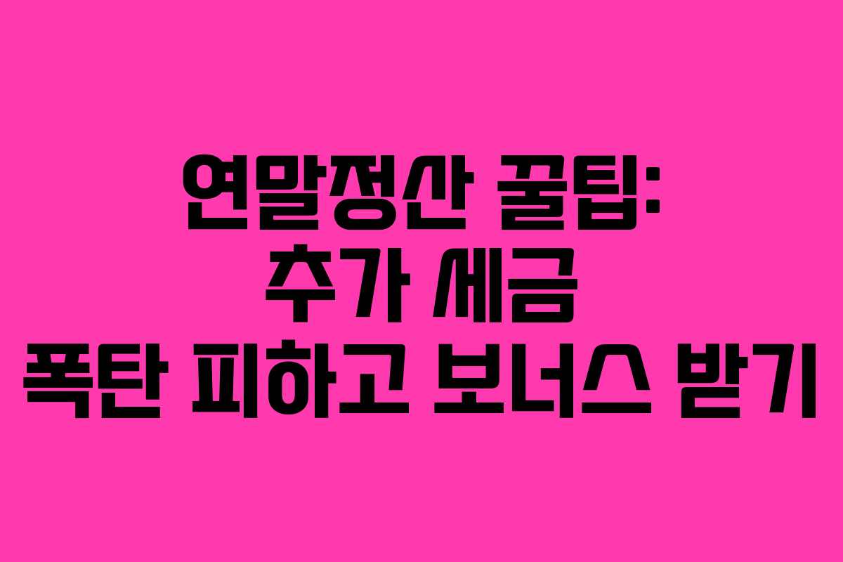 연말정산 꿀팁: 추가 세금 폭탄 피하고 보너스 받기