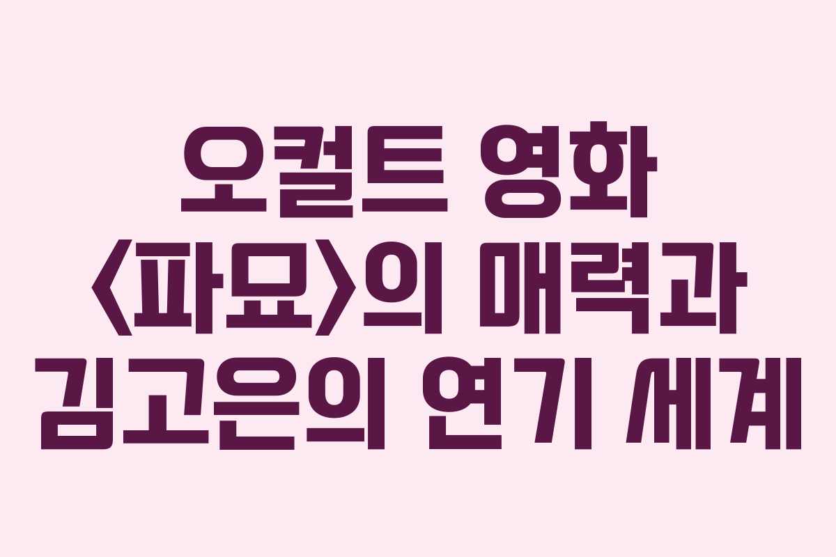 <파묘>는 오컬트를 주제로 한 영화로, 무당 화림의 이야기를 중심으로 전개됩니다. 현대적 감각과 전통이 어우러진 스토리가 특징입니다.