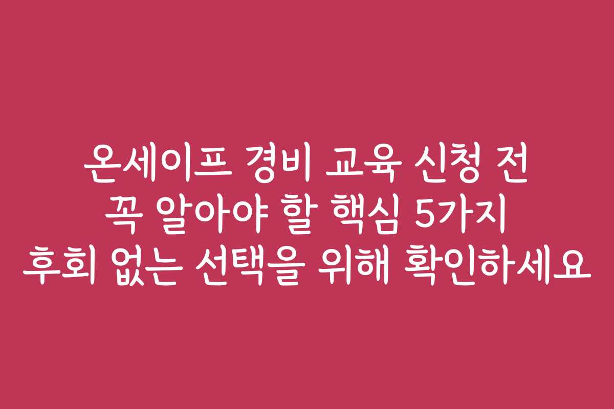 온세이프 경비 교육 신청 전 꼭 알아야 할 핵심 5가지 후회 없는 선택을 위해 확인하세요