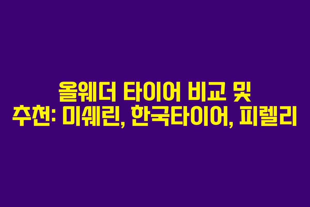 올웨더 타이어 비교 및 추천: 미쉐린, 한국타이어, 피렐리