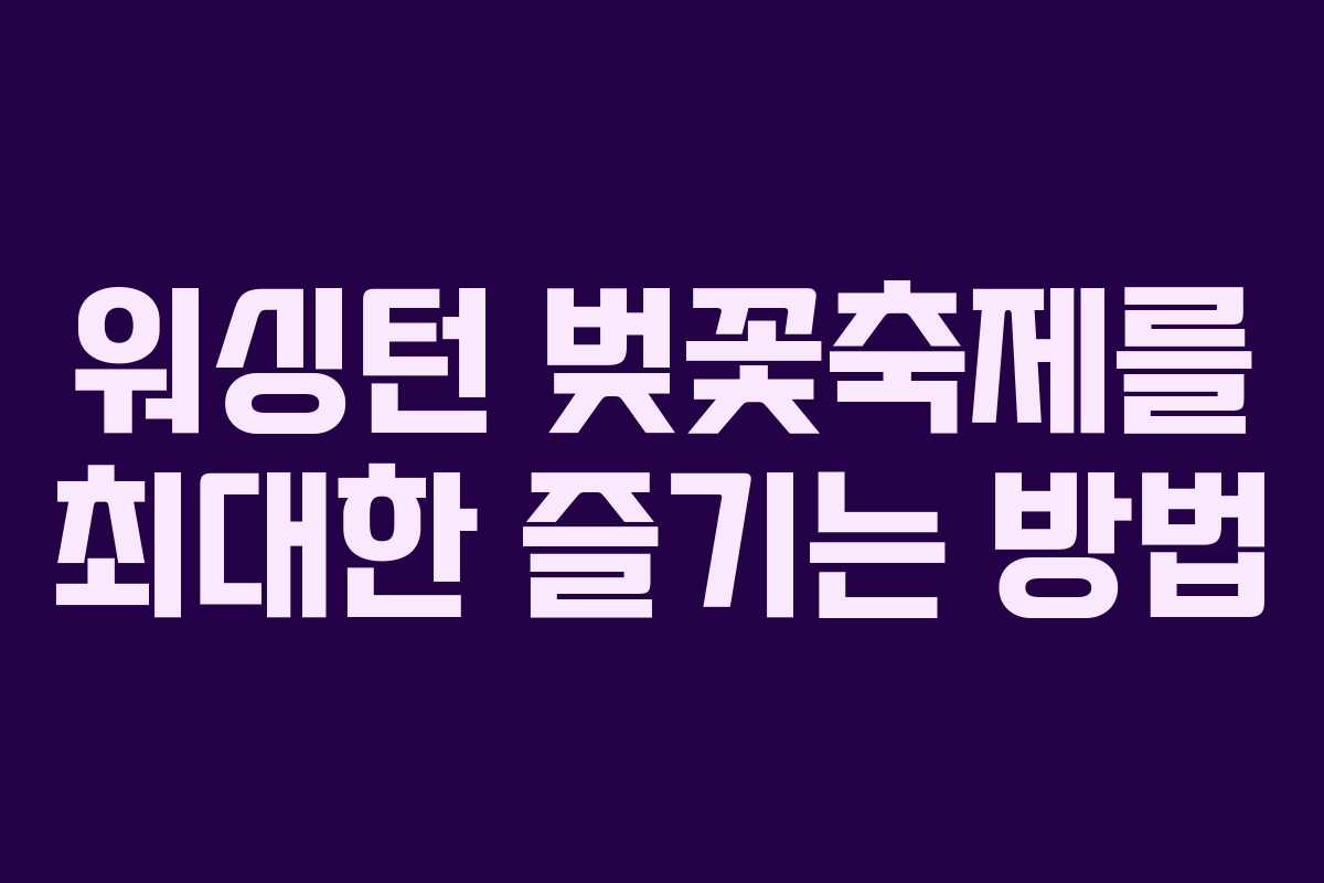 실전 가이드: 워싱턴 벚꽃축제 준비하기