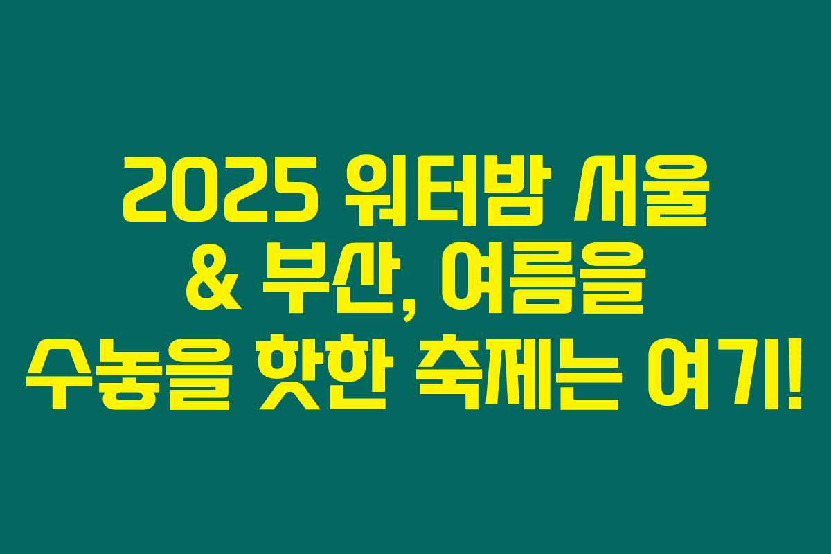 2025년 여름, 당신의 신나는 물놀이 축제가 시작됩니다. 워터밤 서울과 부산에서 펼쳐질 초호화 라인업과 다양한 티켓 정보, 필수 준비물과 꿀팁까지 완벽하게 정리해 드릴게요. 아래를 읽어보시면 특별한 여름을 준비할 수 있답니다.