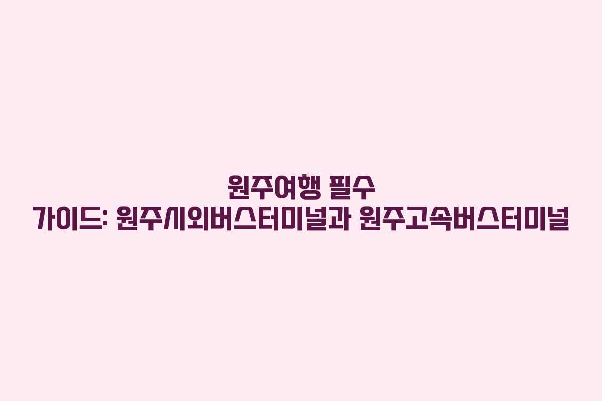원주로의 여행을 계획하고 계신가요? 원주시는 서울, 부산, 인천 등 주요 도시와의 연결이 편리한 시외버스와 고속버스를 통해 쉽게 접근할 수 있습니다. 이번 글에서는 원주시외버스터미널과 원주고속버스터미널의 운행 정보와 요금 등을 자세히 안내드립니다.