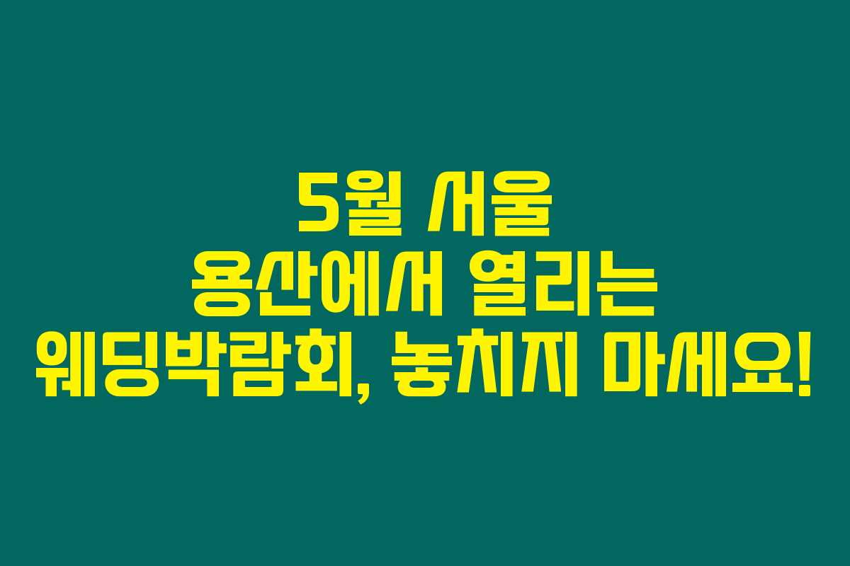 올해 5월, 용산 웨딩박람회에서 결혼식을 위한 필수 정보를 한자리에서 모두 확인해 보세요. 이 기회를 잡으면 결혼 준비가 더욱 수월할 거예요!