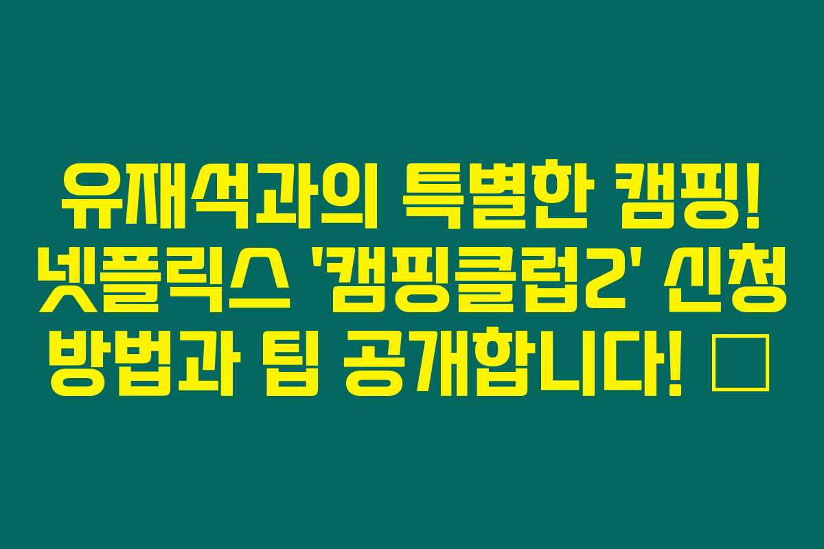 여러분, 상상해보세요! 유명인과 함께 캠핑을 즐길 기회가 생긴다면? 특히 그 유명인사가 국민 MC 유재석이라면, 정말 꿈만 같지 않나요? 아래를 읽어보시면, 넷플릭스의 새로운 캠핑 예능 ‘캠핑클럽2’에서 유재석 씨와 함께하는 특별한 경험을 위한 신청 방법과 실제로 합격할 수 있는 꿀팁을 안내해 드릴게요!