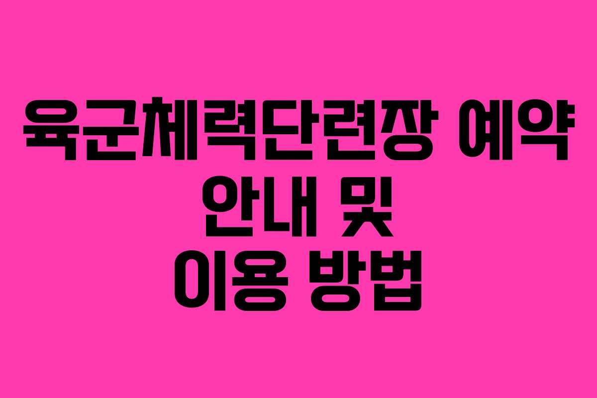 육군체력단련장은 건강한 라이프스타일을 유지하기 위한 좋은 선택이 될 수 있습니다. 시설 이용 시 유의사항을 잘 숙지하고, 예약 절차를 통해 원활한 이용을 하시기 바랍니다.