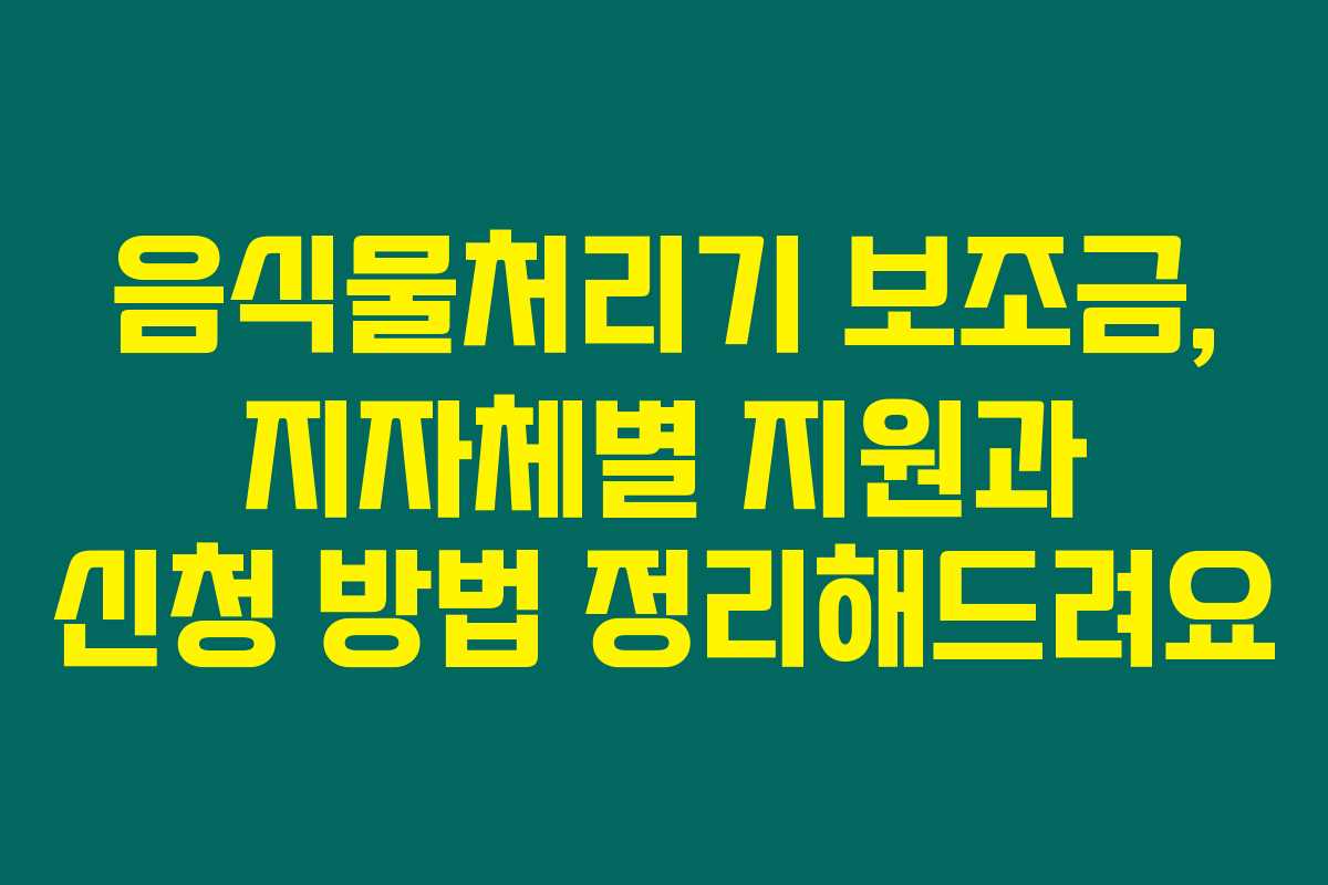 가정에서 발생하는 음식물 쓰레기는 생각보다 많은 비용과 자원을 소모한답니다. 그래서 각 지자체에서는 음식물 처리기를 구매할 때 지원금을 제공하는 정책을 시행하고 있어요. 아래를 읽어보시면 음식물처리기 보조금의 지원 지역과 신청 방법에 대해 자세히 알려드릴게요.