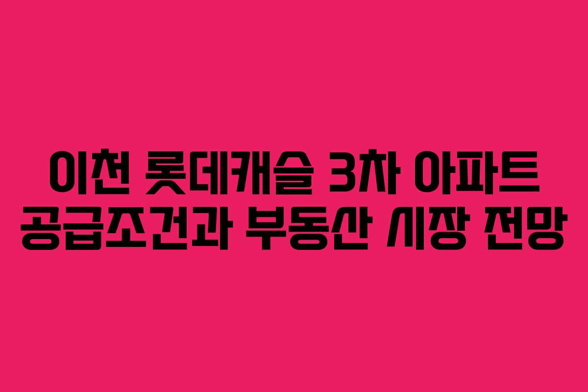 - 2026년 이천 롯데캐슬 3차 아파트의 공급조건 분석
