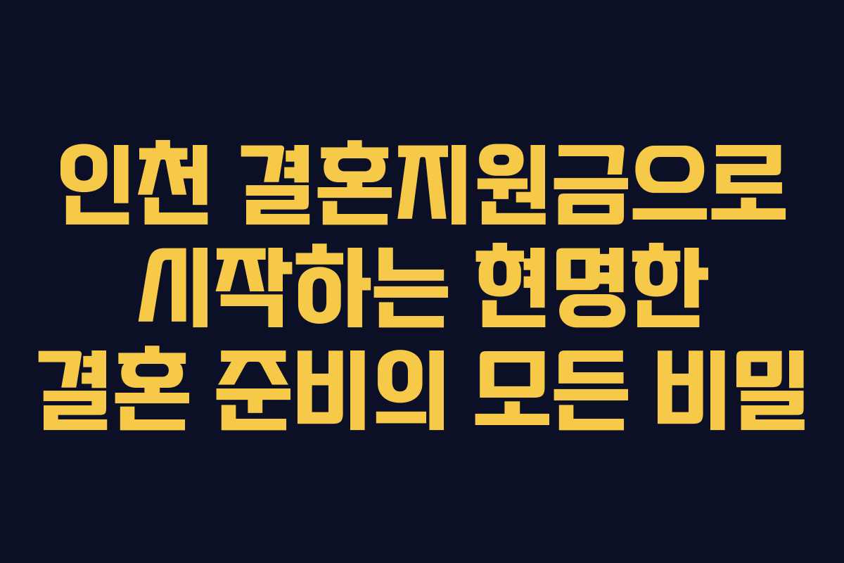 인천 결혼지원금으로 시작하는 현명한 결혼 준비의 모든 비밀