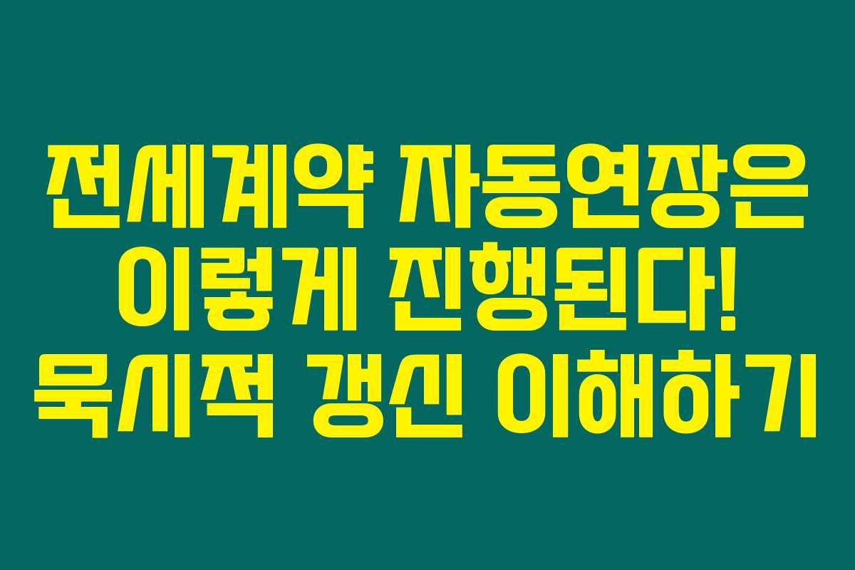 - 묵시적 갱신이 적용되려면 집주인과 세입자 간의 의사소통이 없던 경우 조건을 충족해야 해요. 그러면 제기된 조건과 동일한 내용으로 계약이 연장된다고 간주되죠. 전세금도 같은 조건으로 유지되며, 다른 계약조건도 동일하게 연장될 수 있어요.