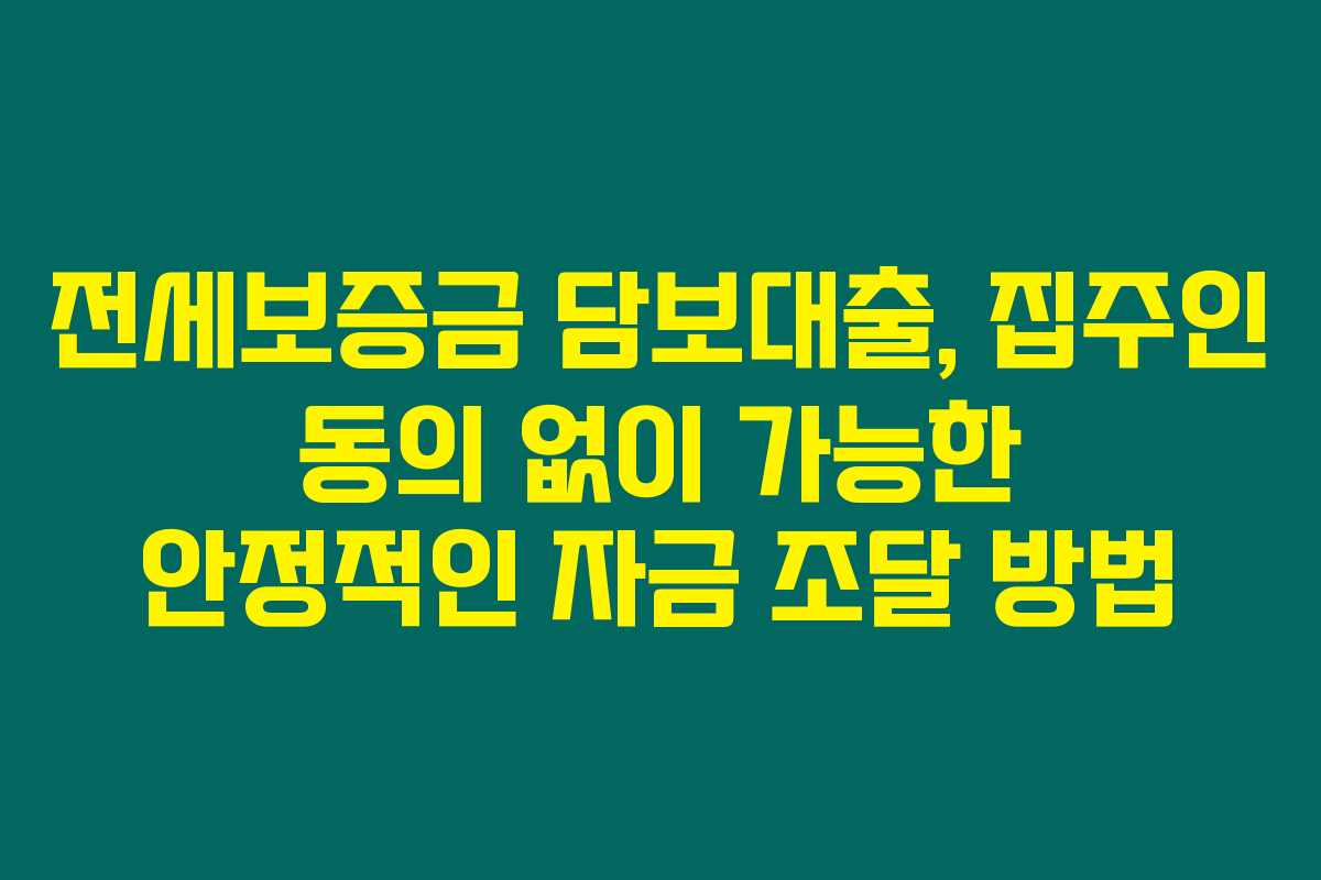 전세보증금 담보대출, 집주인 동의 없이 가능한 안정적인 자금 조달 방법