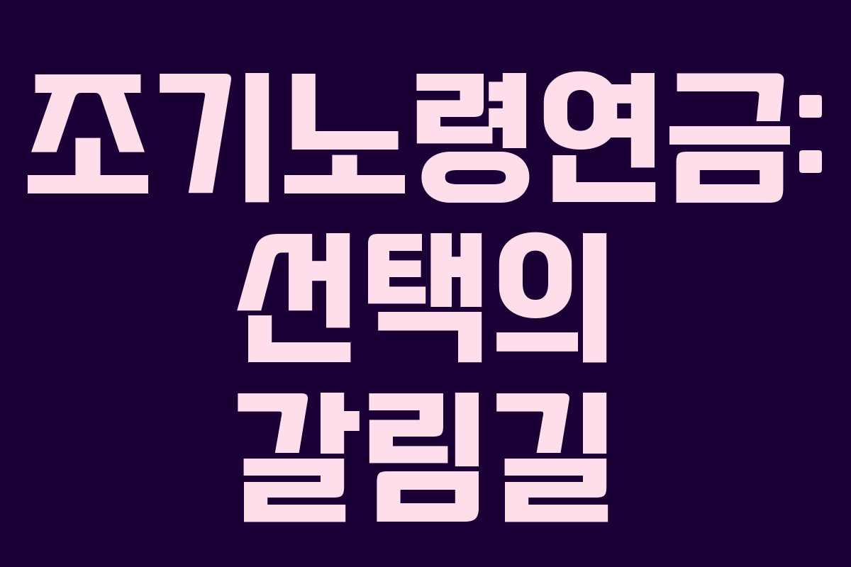 조기노령연금을 선택하는 것은 단기적인 생계 안정에 도움이 될 수 있지만, 장기적으로는 손해를 볼 수 있습니다. 따라서 연금 수령 시점과 소득, 건강 상태 등을 종합적으로 고려하여 결정해야 합니다.