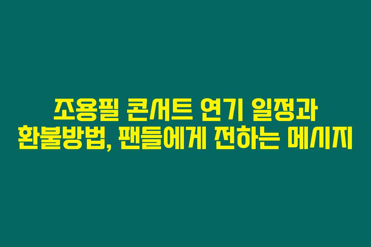 조용필의 대전 콘서트 연기는 팬들에게 잠시의 기다림이지만, 더욱 큰 감동의 시간을 만들기 위한 결정입니다. 모든 분들이 함께 아픔을 나누며, 조용필과 함께하는 시간을 기대할 수 있기를 바랍니다.