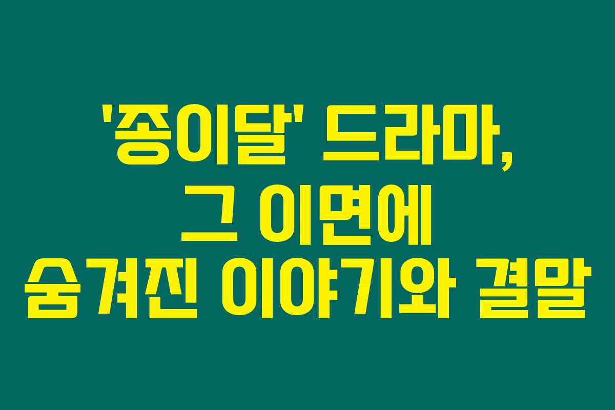 드라마는 원작의 결말과 약간의 차이가 있는데, 이는 한국적인 현대적 감각으로 독특한 마무리를 줍니다. 제가 직접 체크해본 바로는, 종이달 드라마의 결말은 주요 캐릭터들이서로의 선택으로 인해 새로운 길을 걷게 되는 모습을 담고 있습니다.