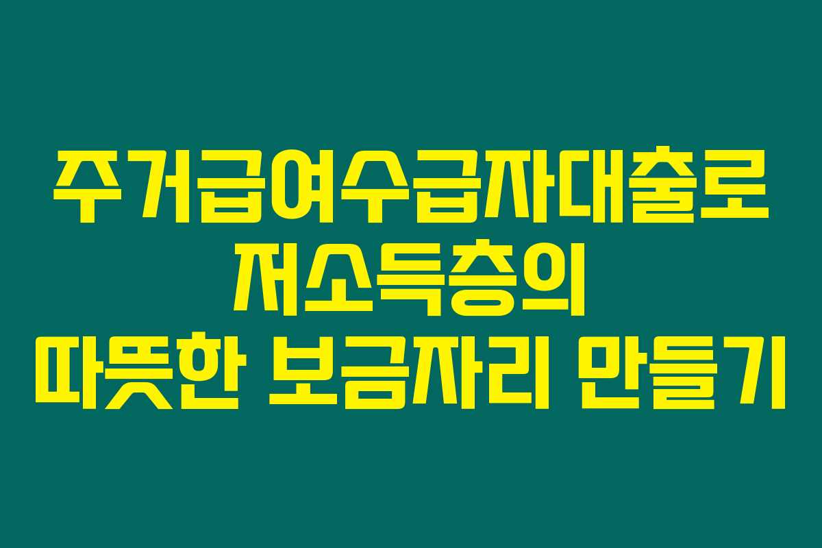주거급여수급자대출은 저소득층 가구에게 주거 안정성을 제공하는 중요한 금융 지원이에요. 이 대출로 주택 마련을 위한 자금 지원을 적극 활용할 수 있답니다.