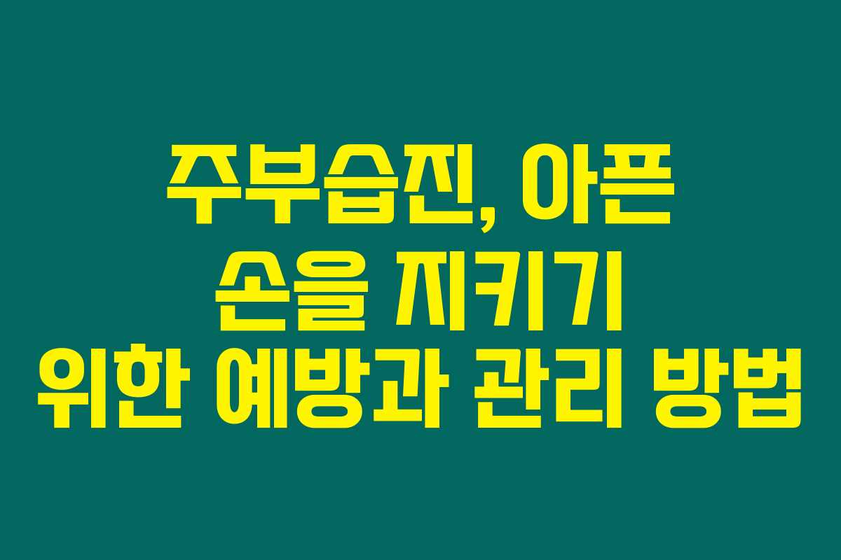 주부습진으로 고생하고 계신가요? 손이 가렵고 아프다면 이 글을 꼭 읽어보세요. 주부습진은 예방과 관리가 필수인 피부 문제랍니다. 당신의 소중한 손을 지키기 위한 유용한 정보와 해결법을 아래에서 확인해 보세요.