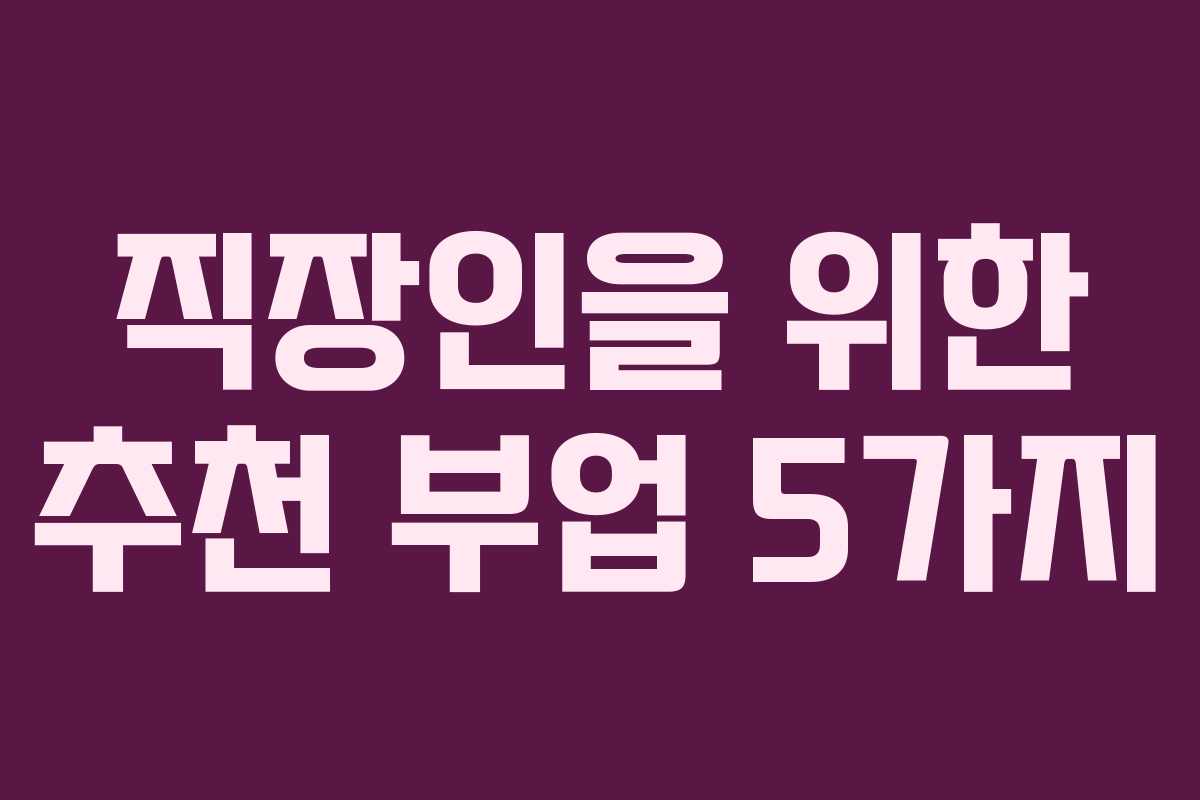 많은 직장인들이 경제적 압박이나 여유 시간을 활용하기 위해 부업을 찾고 있습니다. 이번 글에서는 다양한 경험을 바탕으로 추천하는 직장인 부업 5가지를 소개하겠습니다.