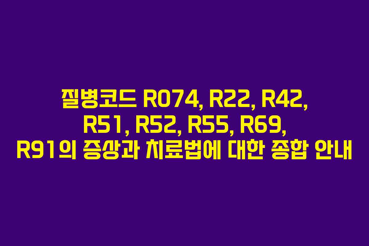 질병코드 R074, R22, R42, R51, R52, R55, R69, R91의 증상과 치료법에 대한 종합 안내