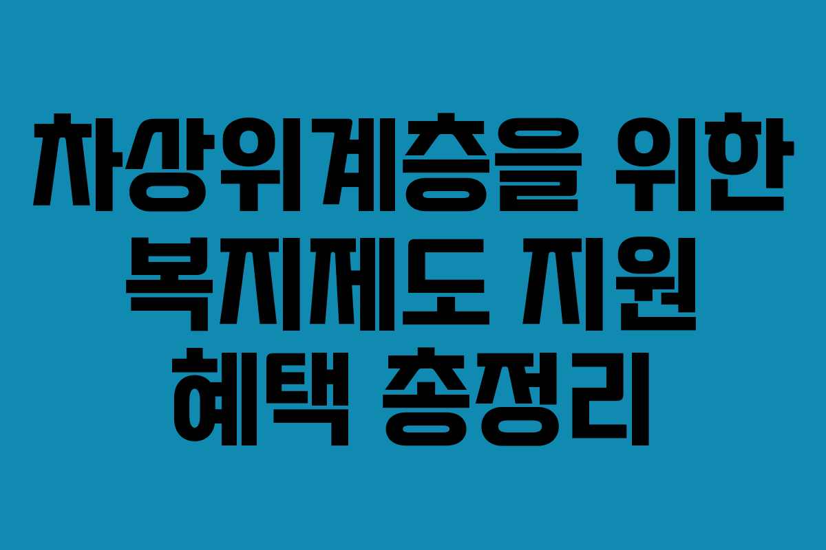 이와 같이 차상위계층을 위한 다양한 복지 정책들이 마련되어 있으니, 해당되는 분들은 꼭 신청하여 필요한 지원을 받으시기 바랍니다.